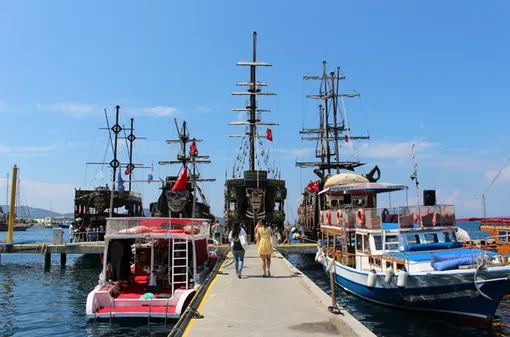 Заключительным аккордом вашей водной прогулки станет песчаный пляж на берегу Средиземного моря. В отличие от Эгейского, на берегу которого расположен Бодрум, оно теплее. Однако, благодаря чуть более холодным водам Эгейского моря, климат Бодрума не такой изнуряюще жаркий в высокий сезон. Так что для любителей отельного отдыха пребывание на солнце у моря будет комфортным. Ну а почувствовать себя настоящим пиратом можно и не выходя из отеля.