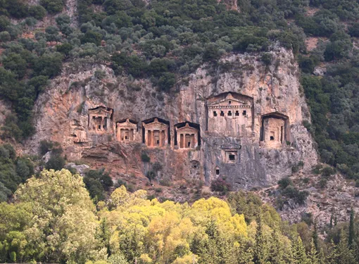 Только не смотрите всю дорогу на воду, поднимите глаза — и перед вами откроются выдолбленные в скалах гробницы ликийской знати. По своей красоте и таинственности они напоминают древний город Петра в Иордании.