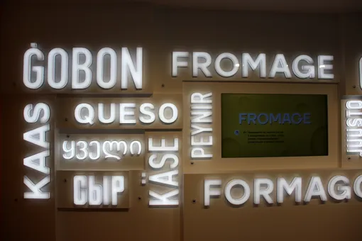На первом этаже фойе с образцами старого оборудования (рука организаторов не повернулась выбросить такие реликвии), а также ресторан «СырБор». На втором этаже завода-музея сама экспозиция. Здесь много интерактивных элементов. Можно услышать, как слово «сыр» звучит на разных языках мира, увидеть как выглядит национальная сырная гордость каждой страны и прочитать о нем, перевернув кружок.