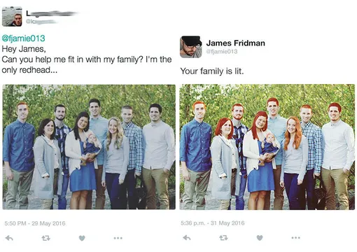 25. «Я одна рыжая. Сделай так, чтобы я не отличалась от остальной семьи»