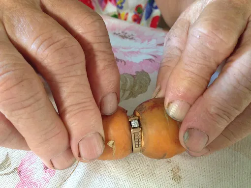 Да, это было именно оно, и Мария сразу его узнала. Мы не знаем, что более удивительно: что кольцо все-таки нашли спустя 13 лет, или то, что сквозь него легко проросла морковь?!