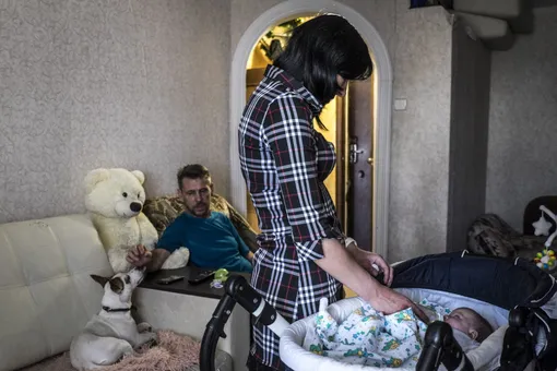Пока Гуля рассказывает историю, Николай в соседней комнате укачивает сына. Дима сейчас мало спит и много плачет, поэтому папа почти все время держит его на руках. Николай приносит сына на кухню, Дима улыбается.