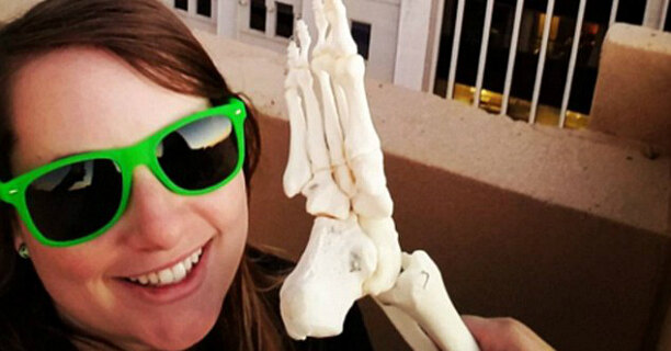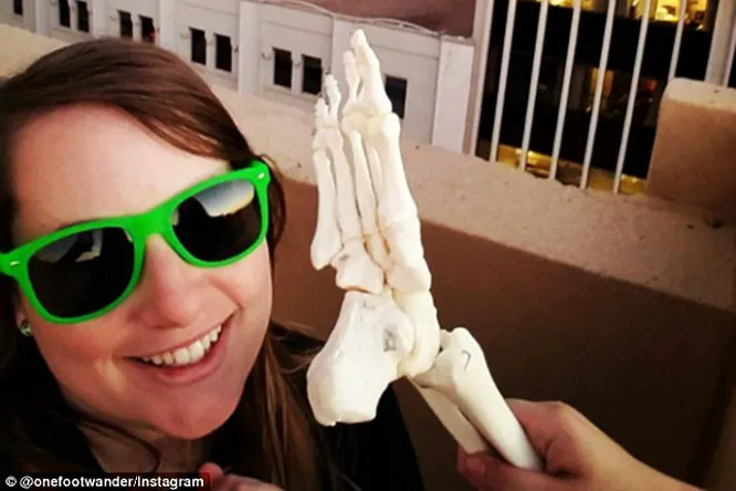 Но Кристи не унывает. Собирать деньги на свое лечение она решила необычным способом: заведя в Инстаграме (Социальная сеть признана экстремистской и запрещена на территории Российской Федерации) аккаунт @onefootwander («странствующая нога»). В нем она публикует фотографии скелета ноги в необычных местах: на морском побережье, у одинокого маяка, на фоне городского заката и в окружении разноцветных фонариков.