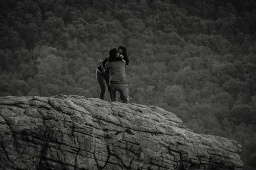 В 6:17 они появляются, парень встает на одно колено и делает девушке предложение. Та плачет от счастья, я делаю снимки.