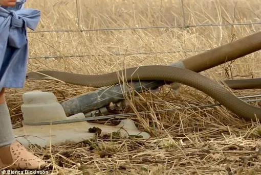 Австралийка Бьянка Дикинсон фотографировала двухлетнюю дочь на своей ферме. В какой-то момент ей показалось, что возле ног девочки на ветру болтается кусок коры.
