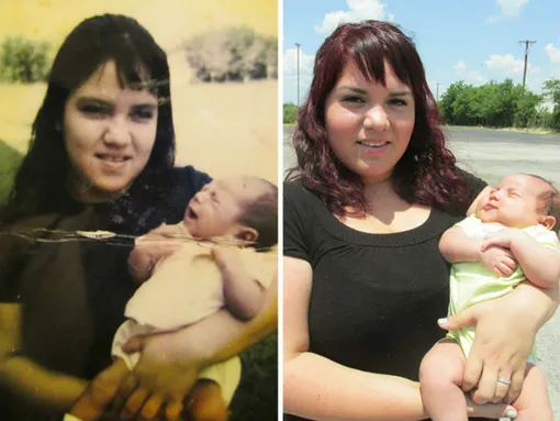 Мама и дочка. Разница между фотографиями в 25 лет