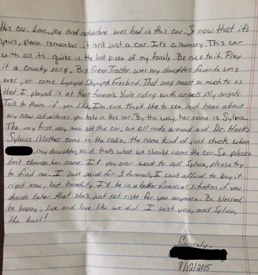Невероятное письмо, найденное в машине, заставляет плакать тысячи людей