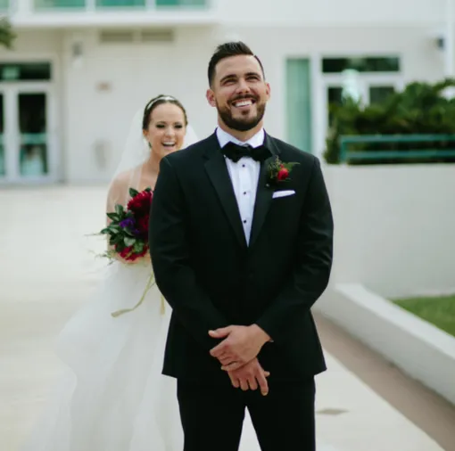 Другие детали этой свадьбы тоже были не вполне традиционными. Жених — игрок бейсбольной команды — внес свою лепту в оформление именных карточек для гостей (в виде бейсбольной биты) и сервировку стола.