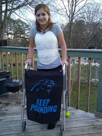 Медди С., после тяжелой автомобильной аварии и перелома позвоночника сохранила способность ходить. Но она предпочитала оставаться дома, потому что сильно смущалась от того внимания, которое привлекал ее ортопедический корсет.