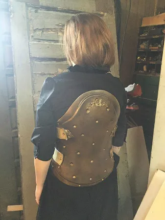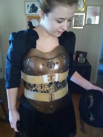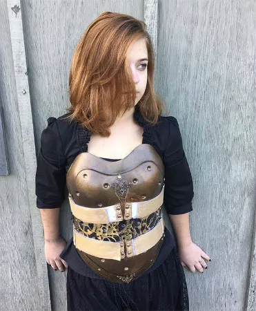 После чего Сара сделала из обычного пластикового корсета настоящий доспех механического человека из мира стимпанка.