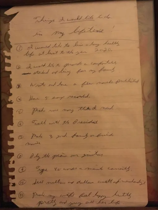 Всего в списке 60 желаний. Первое звучит так: «Я хочу прожить долгую и здоровую жизнь и умереть не раньше 2020 года». Этот пункт Мик выполнить не смог, но он остался жить в своих детях, которые твердо намерены претворить мечты отца в жизнь.
