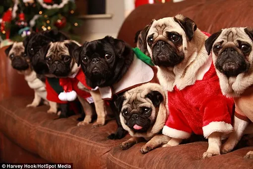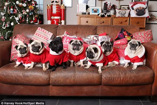 Сейчас она с нетерпением ждет Нового года, когда каждый из мопсов получит свою собственную мягкую игрушку и сможет насладиться специальным угощением: колбасой из индейки.