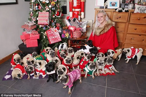 Чтобы найти время и деньги на ежедневный уход за тридцатью собаками, она уволилась с работы косметолога и продала все свои дизайнерские сумки и украшения. Выложить тысячу фунтов стерлингов на рождественские наряды мопсов для нее — лишь верхушка айсберга. За десять лет, что у нее живут собаки, британка Бекка Дрейк потратила на них уже 130 тысяч фунтов.