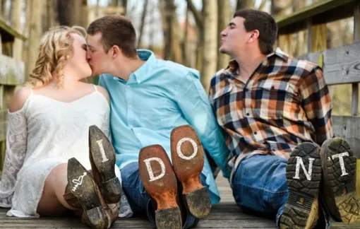Интересно, что снимок стал логичным продолжением того, как прошла помолвка Бритти и Коди. Здесь тоже не обошлось без Митча: вот они сидят втроем, и на обуви влюбленных написано I do («Я согласна»). Но буквы «n't» на ботинках Митча продолжили эту фразу до I don’t («Не согласна»).