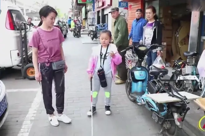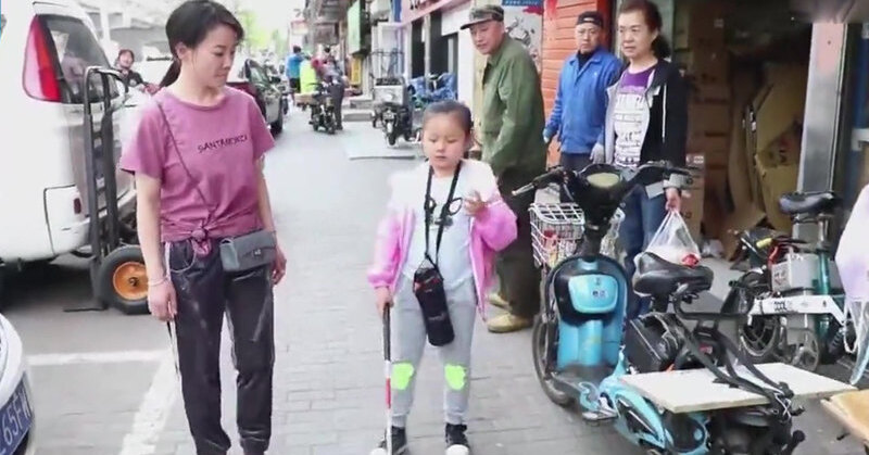 Слепая девочка из Китая сама ходит в школу — не зная, что мама идет за ней