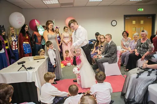 Сказочная церемония состоялась 18 июня. «Невесту» вел к алтарю ее старший брат Каллум. В присутствии близких друзей и их семей «новобрачные» поклялись навсегда остаться лучшими друзьями.