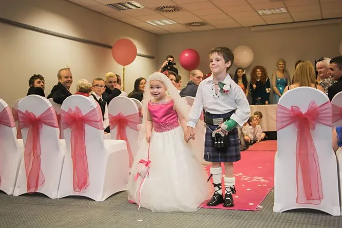 Сказочная церемония состоялась 18 июня. «Невесту» вел к алтарю ее старший брат Каллум. В присутствии близких друзей и их семей «новобрачные» поклялись навсегда остаться лучшими друзьями.