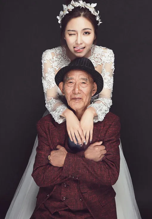 Свадебную фотосессия без жениха, но зато с собственным дедушкой устроила 25-летняя китаянка Фу Сюйвей. Таким образом она осуществила мечту 87-летнего старика, который очень хотел увидеть внучку в подвенечном наряде.