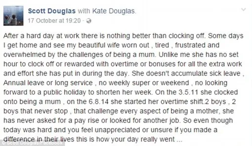 Этот пост появился в ленте Facebook (Социальная сеть признана экстремистской и запрещена на территории Российской Федерации) вечером обычного вторника. Отец двоих детей, Скотт Дуглас, написал его, обращаясь к своей жене Кейт.