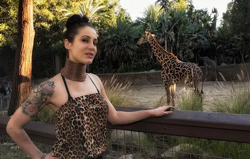 30-летняя Сидни Смит из Лос-Анджелеса гордо называет себя «Женщина-жираф». Все потому, что пять лет назад женщина решилась на необычный эксперимент, который помог ей удлинить шею. В течение всего времени Сидни непрерывно носила на шее металлические кольца, которые постепенно вытягивали позвонки и мышцы.