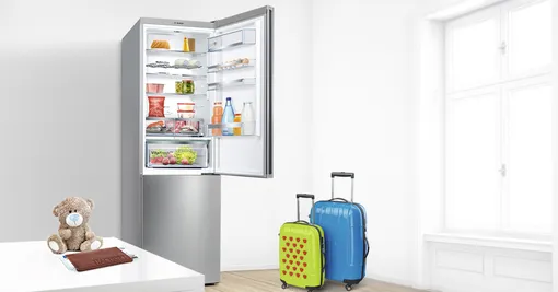 Тем, кто не слишком внимательно следит за инновациями на рынке бытовой техники, остается только один выход перед долгим путешествием. Отключить холодильник, разморозить морозилку, доесть все продукты, а то, что осталось, раздать родным и друзьям. После этого протереть все внутренние поверхности влажной салфеткой и отправляться в путешествие. Но если у вас холодильник с технологией Bosch VitaFresh, многое меняется. Во-первых, инновационные холодильники Bosch относятся к категории No Frost и не требуют разморозки ни при каких условиях. А во-вторых, в специальной зоне свежести некоторые продукты могут храниться настолько долго, что вы сможете смело провести лето у моря. К примеру, тесты на свежесть показали, что морковь в ящике для овощей и фруктов может храниться до 80 дней и при этом не потеряет питательных свойств и витаминов и даже не заветрится.