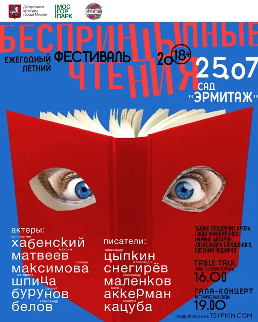 «Летний фестиваль наш любимый проект, потому что с него по сути и начались наши фестивальные истории с участием большого количества артистов и писателей. Москва, лето, свежий воздух. Что еще надо для идеальных "БеспринцЫпных чтений"! И потом сразу в отпуск. Так что мы собираемся как следует пошуметь! Приходите!» — Александр Цыпкин.