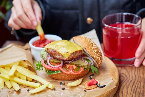 Что может быть более аппетитным, быстрым и вкусным, чем бургер? Только сытная котлета, для фарша которой используется мясо мраморного бычка, молодого козленка или нежного лосося, в правильной компании овощей и соусов, упакованных между двух половинок свежеиспеченной булки. И с группой поддержки в виде щедрой порции картофеля фри, кетчупа и бокала клюквенного морса.