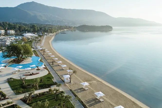 Отель расположен в заливе Дассия, в 15 минутах от исторического центра острова и 20 минутах от международного аэропорта. Тут большая зеленая территория, частный песчаный пляж, 411 роскошных номеров, сьютов и вилл с просторными балконами, частными садами и индивидуальными бассейнами.