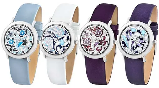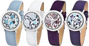 Отдельно стоит отметить необычайно яркую цветовую гамму ремешков из натуральной кожи, созданных специально к весенне-летнему сезону. Малиновый, сливовый, кипенно-белый, цвета океанской волны, темно-фиолетовый, нежно-голубой — целый фейерверк оттенков для вечно юных женщин!