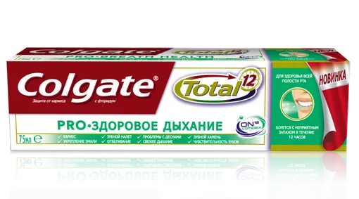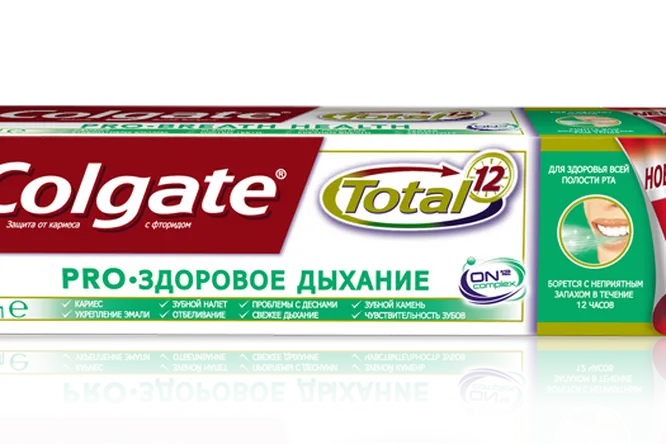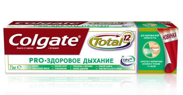 Компания Colgate выпустила на российский рынок новую зубную пасту – Colgate Total Pro – Здоровое Дыхание, созданную на основе уникальной запатентованной технологии. Новинка устраняет стойкие неприятные запахи, в т. ч. от продуктов