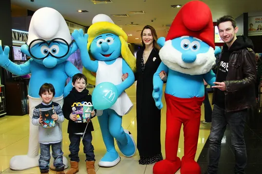 Новая программа Хэппи Мил, стартовавшая одновременно с официальной российской премьерой ленты — 31 марта, — объединила десять красочных игрушек в виде домиков для героев мультфильма. Все домики различаются по цвету и населяют их разные персонажи анимационного фильма: это знакомая всем Смурфетта и ее маленькая подруга-смурфлёнок Сасетта; смурфики Силач и Растяпа; фантастические насекомые вспыльчивая Стрекоза и энергичный Жук; любитель искусства Художник-смурф и медлительный Зануда-Благоразумник, путешественник-смурф Марко и мастер кулинарии Сластена; шустрый кролик, который светится в темноте и не расстающийся с зеркалом смурфик-Красавчик, а также рассудительный и готовый в любой момент прийти на помощь Папа-смурф.