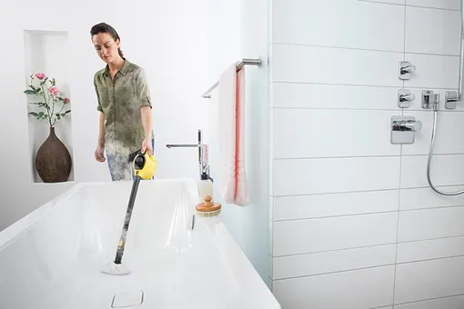 С помощью такого пароочистителя можно легко отчистить швы или смесители, зеркала, керамическую плитку и столешницы. А главное, сила горячего пара, заключенного в этом удобном домашнем устройстве, позволяет практически полностью отказаться от использования бытовой химии, вредному воздействию которой особенно подвержены маленькие дети и аллергики. Кроме того, согласно исследованиям, проведенным независимой лабораторией, при тщательной очистке твердых поверхностей пароочистители Kärcher уничтожают 99,99% распространенных в быту бактерий. Возможно ли добиться такого результата с помощью традиционных методов уборки?
