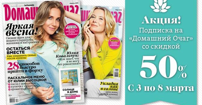 Подарите своим любимым мамам и подругам (а может быть, и себе) приятный и практичный подарок — годовую подписку на любимый журнал «Новый очаг»! Ведь в преддверии 8 марта мы дарим на нее скидку 50%!