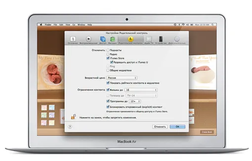 - Родители также могут выбирать разрешенный для просмотра контент и настраивать уровень доступа к играм через Game Center.