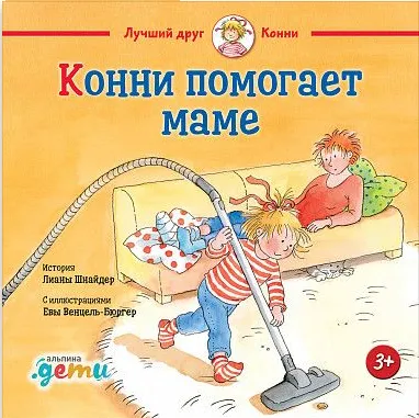 Давайте посмотрим на серию для детей от 3 до 5 лет «Лучший друг Конни». Каждая книга про девочку Конни — ситуация, которая может произойти с любым ребенком. Конни впервые идет в детский сад, едет на ферму, ухаживает за приболевшей мамой, теряется в магазине. Обсуждая сюжет, мы будем знакомить ребенка с социальными нормами поведения и обсуждать настоящие жизненные ситуации.