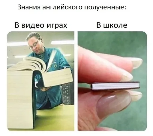 Много мемов про учеников, которые якобы выучили анлийский во время игры в компьютерные игры и в интернете. В защиту учителей заметим, что все эти знания легли на школьную базу.