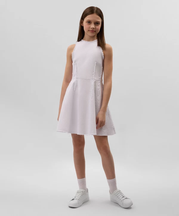 Девочкам-подросткам понравится платье с рваным эффектом, есть в такой отделке что-то бунтарское. Мамам, наверное, больше по душе сочетание этого платья с балетками, но не менее стильно смотрится вариант с кедами!