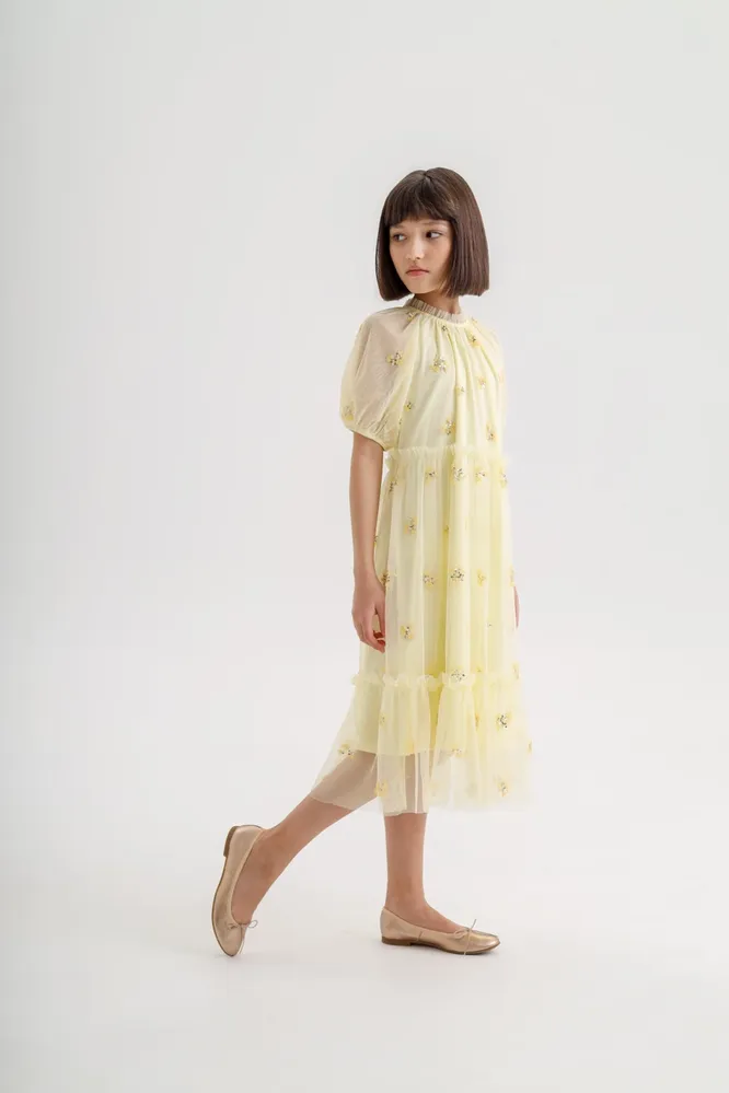 Сегодня в трендах разбираются даже дети, поэтому минималистичное платье из твида в модном оттенке сливочного масла — выбор, который оценят и родители, и гости. Можно на праздник, в театр, на прогулку.