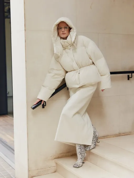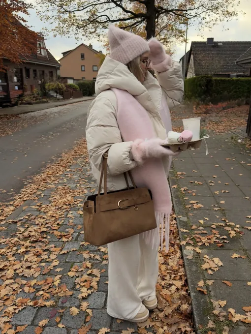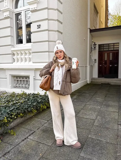 Пуховик + мягкий трикотажный total look: уют как эстетика, а не компромисс