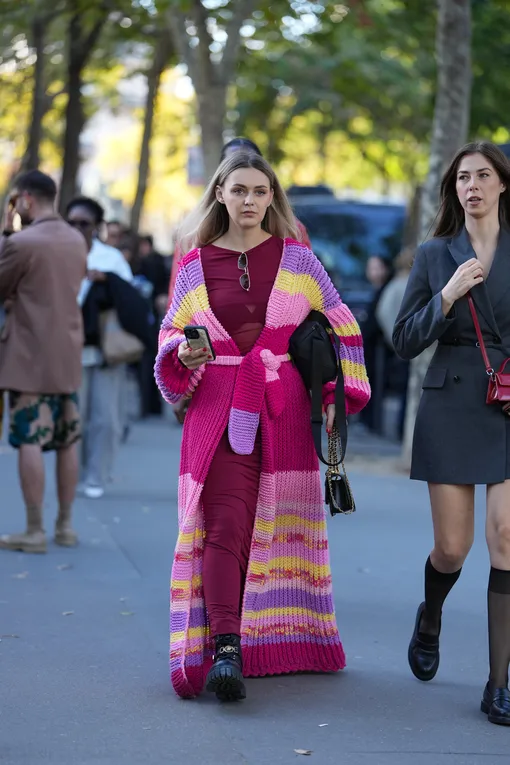 Два насыщенных оттенка из одной палитры редко находят гармонию. Вместе они создают ощущение перегруженности, будто цветовой акцент просто не знает меры. Выход прост: используйте один из цветов как главный, а второй — как деталь. Фуксиевая сумка на фоне бордового пальто или бордовые сапоги в сочетании с розовым поло — вот примеры, когда цветовые сочетания действительно работают.