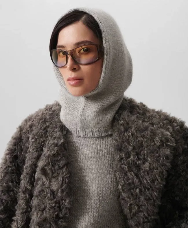 База, с которой нужно начинать погружение в мир экстравагантных головных уборов. Серый классический капор смотрится интересно, но при этом неброско, а еще его совсем не сложно вписать в базовый гардероб.