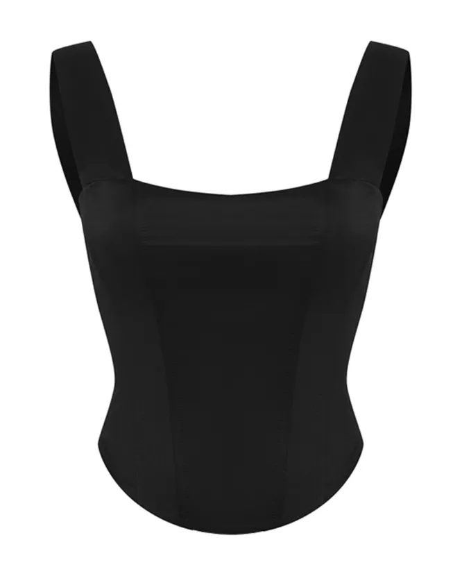 Хорошо подойдет плиссированная или А-силуэта миди-юбка — она придаст образу легкость и женственность.Можно попробовать сочетание с прямой юбкой — строгий и структурный образ, подходящий даже для деловой среды. Если добавите к корсету юбку-солнце, то получите романтичный летний вариант.