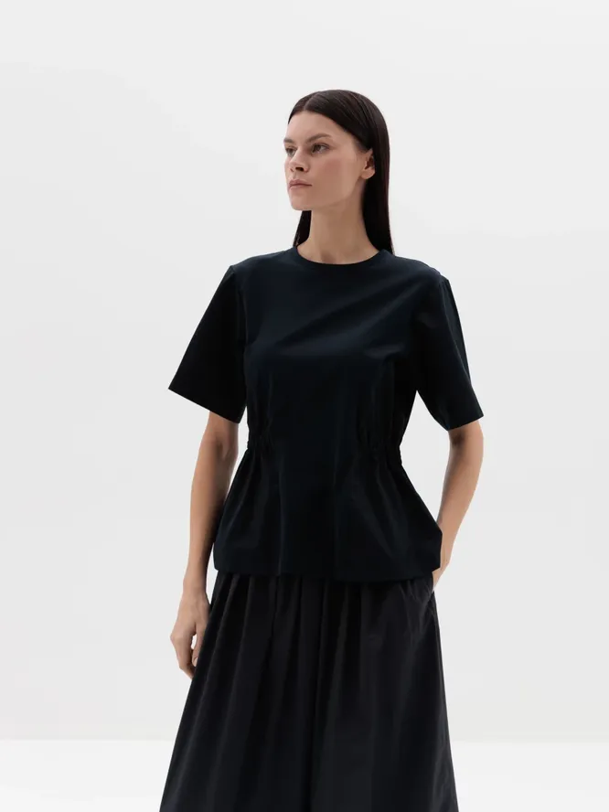 Приталенная блуза с коротким рукавом из 100% хлопка — прекрасный вариант на лето. Вы можете дополнить её брюками или классическими шортами, чтобы получить женственный, лёгкий образ на каждый день.