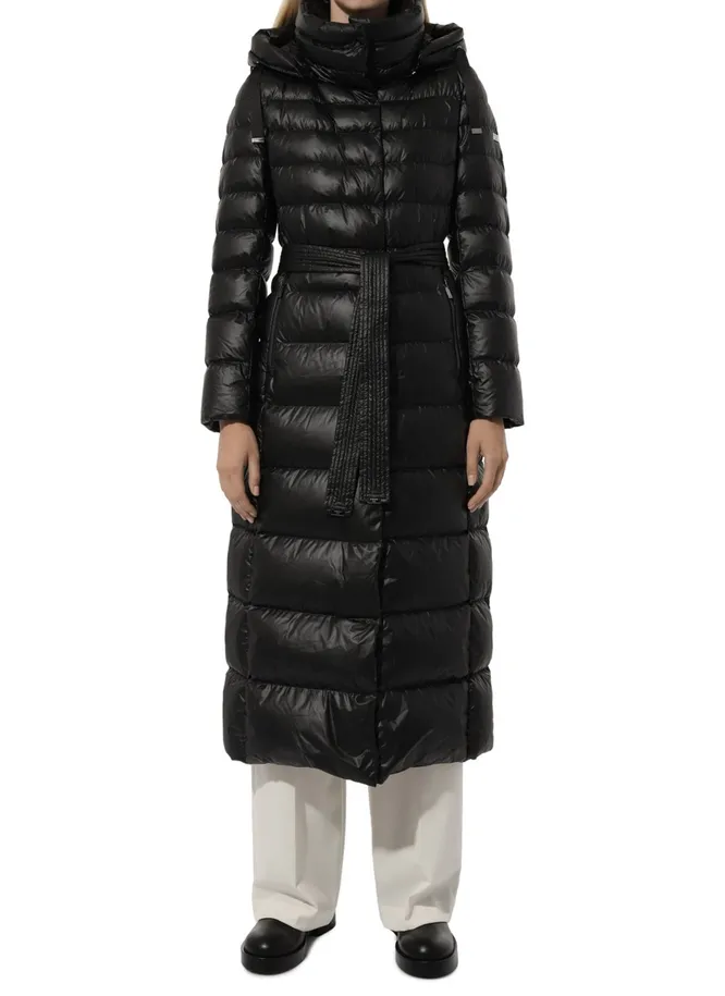 Приталенный пуховик с поясом