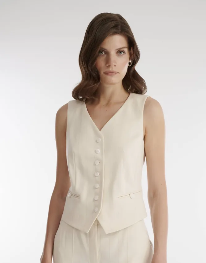 Приталенные жилеты вошли в моду еще в прошлом году, предвещая тренд на женственность. У этой модели есть одна сверхспособность: она способна за одно мгновение скинуть вам несколько килограммов. Благодаря плотной ткани и приталенному крою, жилет идеально садится и визуально уменьшает верхнюю часть тела.