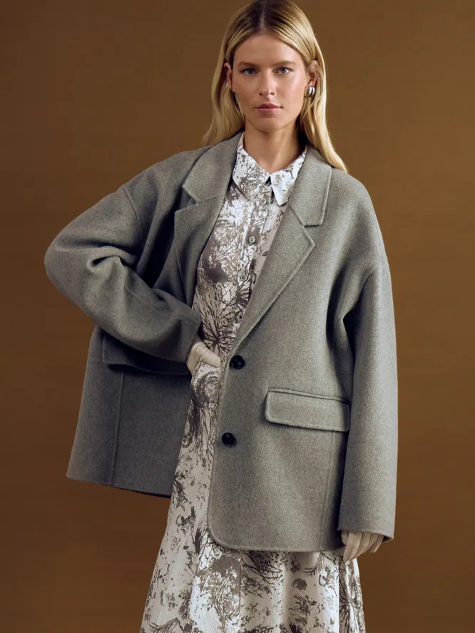 Вариант на более тёплую весну. базовое серое полупальто может стать часть капсульного гардероба. Оно смотрится стильно и сочетается и с джинсами, и с брюками, и с платьями, так как выглядит как плотный пиджак.