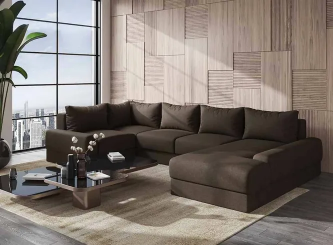 Когда помещение выполняет сразу несколько функций — например, и гостиной, и спальни, возникает необходимость в мебели, которая будет выполнять сразу несколько задач. Тренды 2025 года по-прежнему демонстрируют востребованность П-образных и угловых диванов, которые трансформируются в кровать. При этом, как мы видим, сидения становятся глубже, а подушки — больше и мягче, чтобы способствовать максимальному комфорту. Такие диваны сегодня напоминают мебель для домашних кинотеатров.
