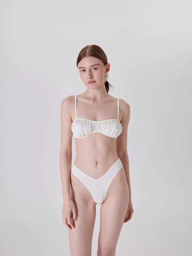 Лиф со сборками украсит небольшую грудь. Они смотрятся очень женственно, создавая дополнительный объем в области груди. Молочный цвет лифа продолжает эту атмосферу нежности и уюта.