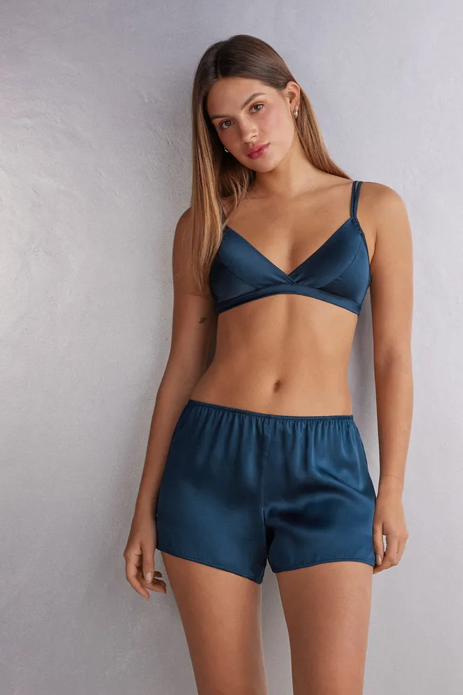 Нижнее бельё из шёлка — новый уровень комфорта. Даже простой по фасону лиф из этой ткани будет выглядеть роскошно и дорого. Присмотритесь к варианту в глубоком синем, «королевском» цвете.