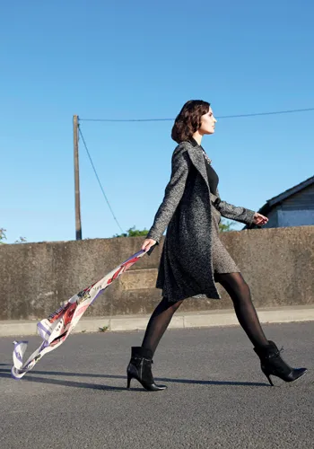 Пальто Boss Black, платье Jigsaw, сапоги Mimco, колготки Wolford, платок Sonia Rykiel